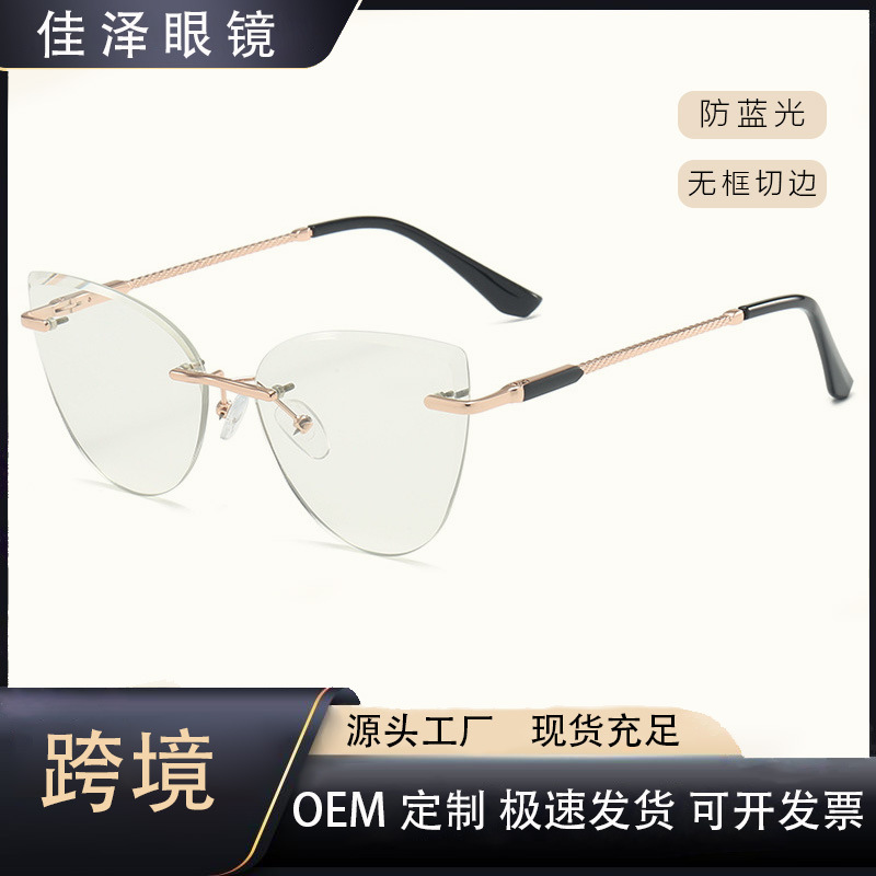 Pbt 14310対外貿易金猫眼枠なし縁切りメガネ女性欧米シリーズブルーレイ防止メガネパチンコフレーム男性