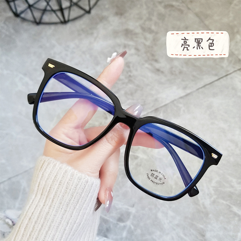Tr90黒枠大フレームメガネ女性韓国版潮防ブルーインスタ風フラットミラーレトロ近視眼鏡フレーム男