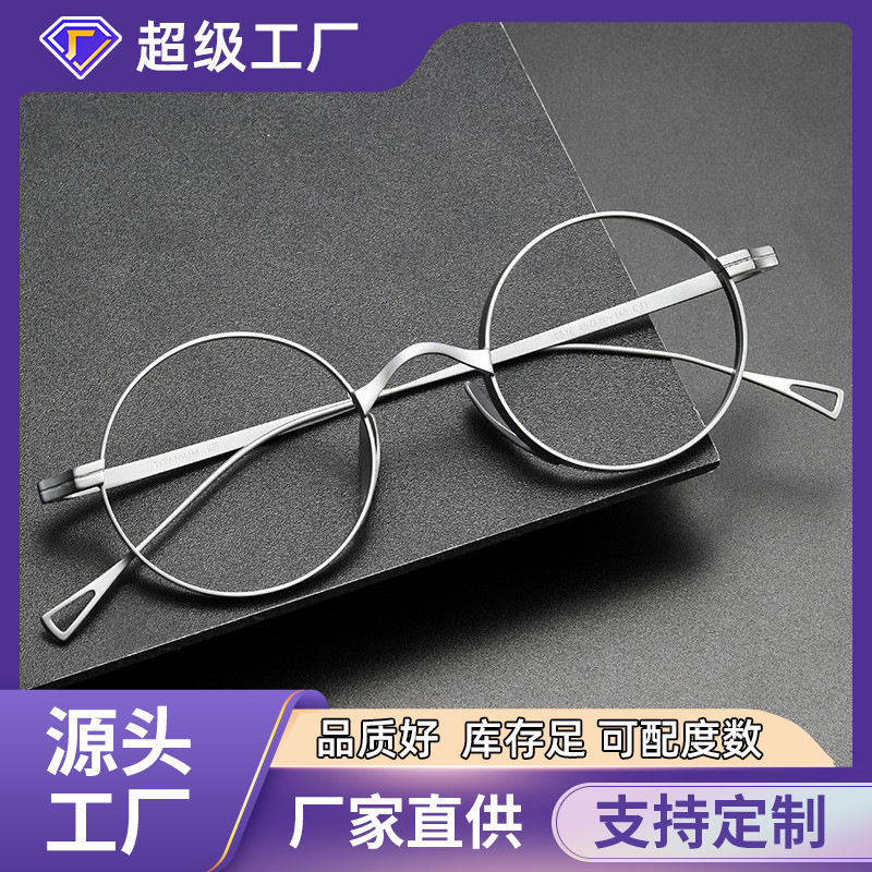 新型9704姜文徐峯同モデル復古無ねじ純チタン眼鏡丸枠