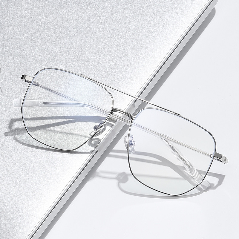 レトロな金属の正方形の大きいフレームの双梁のパイロットのメガネのフレームの男性の青い光のメガネの平光鏡の近視眼の鏡のフレーム