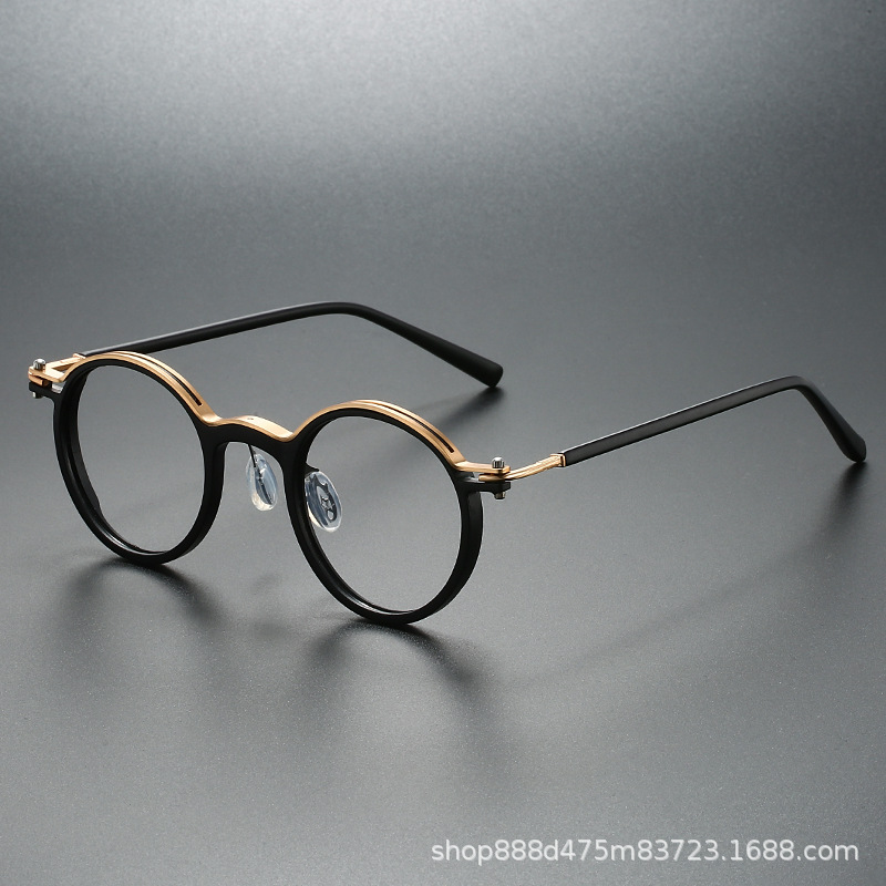 新しい抗青色光レトロフラットミラーラウンドメガネフレーム、米釘フレーム、近視抗青色光メガネを装備可能
