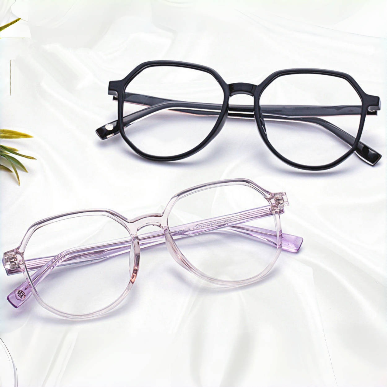 多角形冷銀大枠眼鏡近視女性には、青い光を防ぐ顔が痩せている素顔平光眼鏡がついている