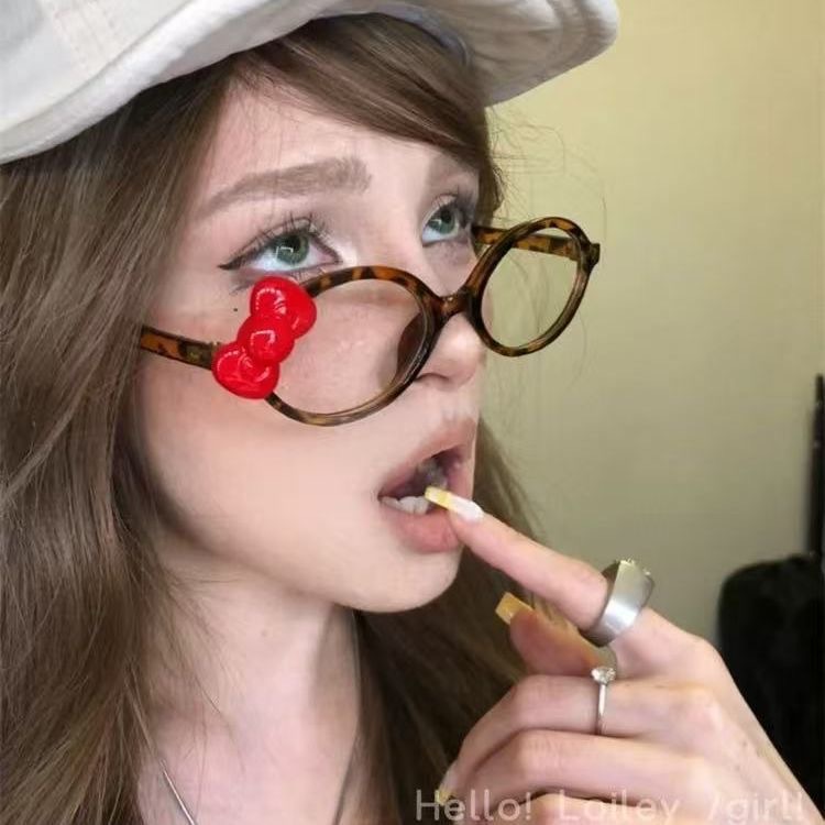 キティかわいいレトロヒョウ柄メガネフレームミレニアムホットガールy2kスタイル多用途べっ甲女性アイドルストレート井ライ同スタイル