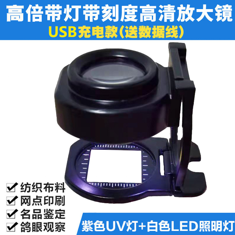 USB充電デスクトップ拡大鏡40倍折り畳み式照布鏡測定ledライトミニスケール拡大鏡付き