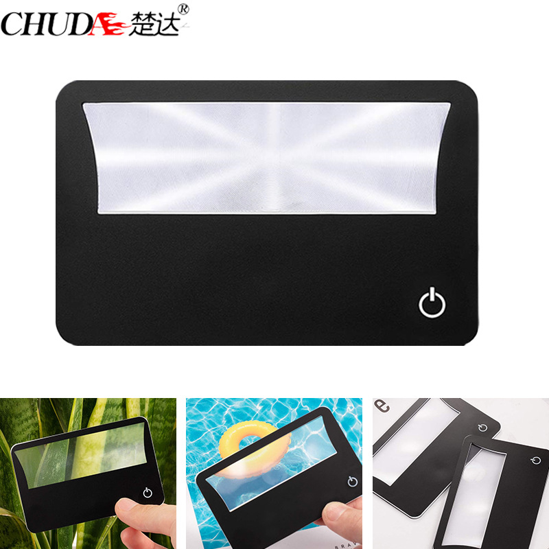 楚達はランプの携帯カードのpvcルーペの名刺のデザインのledルーペを持って3倍を読みます。