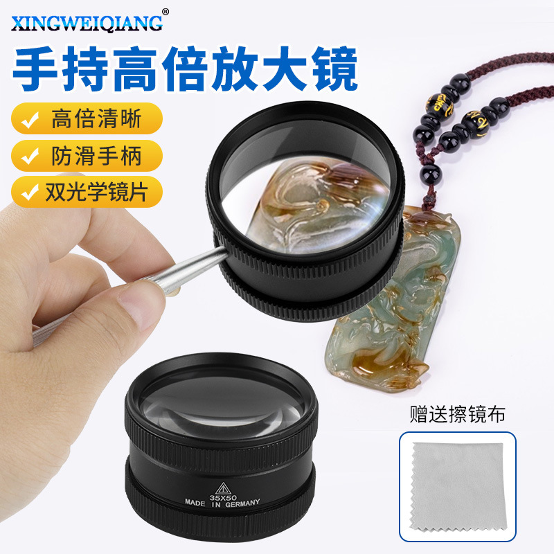 35倍50mm高倍古遊びジュエリー琥珀鑑定手持ち式金属円筒ルーペ鏡拭き布付き