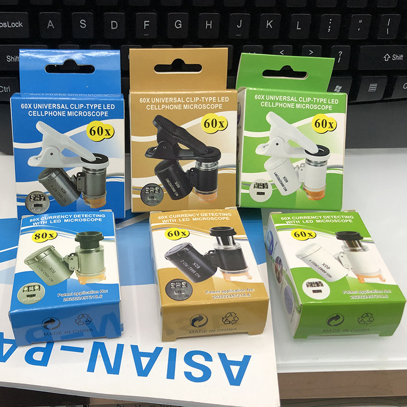 100倍LEDライト拡大鏡ミニポータブル携帯電話クリップ写真撮影と紙幣検査80倍顕微鏡小学生教材