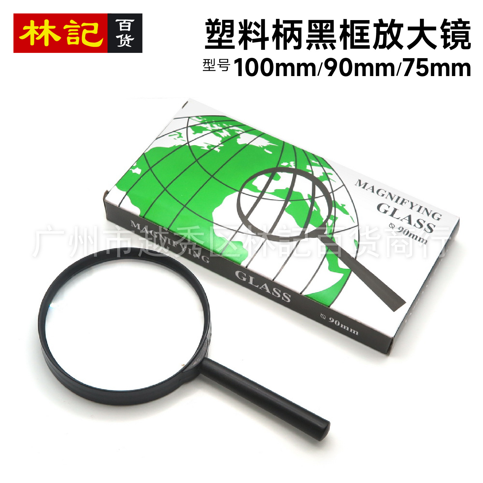 プラスチック柄ルーペ手持ちストレート柄黒枠ガラス樹脂2元卸売り景品部品