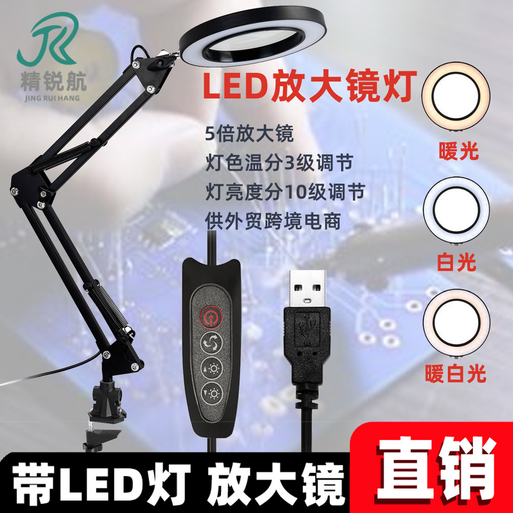 拡大ミラーランプledデスクトップランプ修理補助工具クリップ式折り畳み式電気スタンドusb読書卓上ランプ