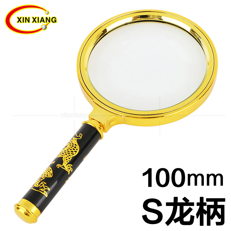 土豪金色龍紋ハンドル老人読書本100mm夜市は縁日10倍に拡大鏡を持っている