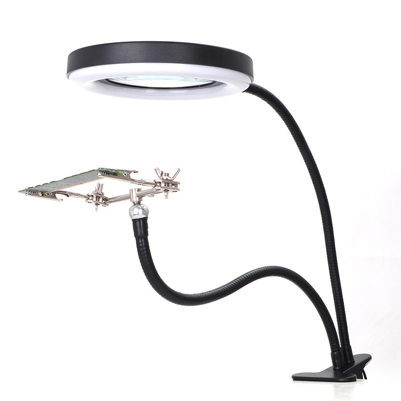 工場卸売りランプ付き拡大鏡クリップ万向スタンド10倍20倍子母高精細白ガラスレンズ修理ランプ
