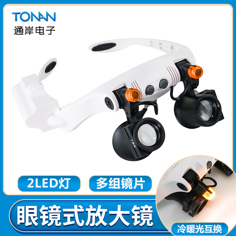 メガネ式ルーペ交換冷暖光帯2つのledランプ電子修理高倍ヘッド式ルーペ卸売り
