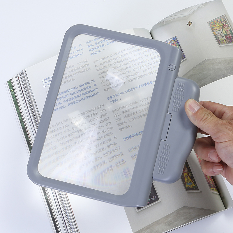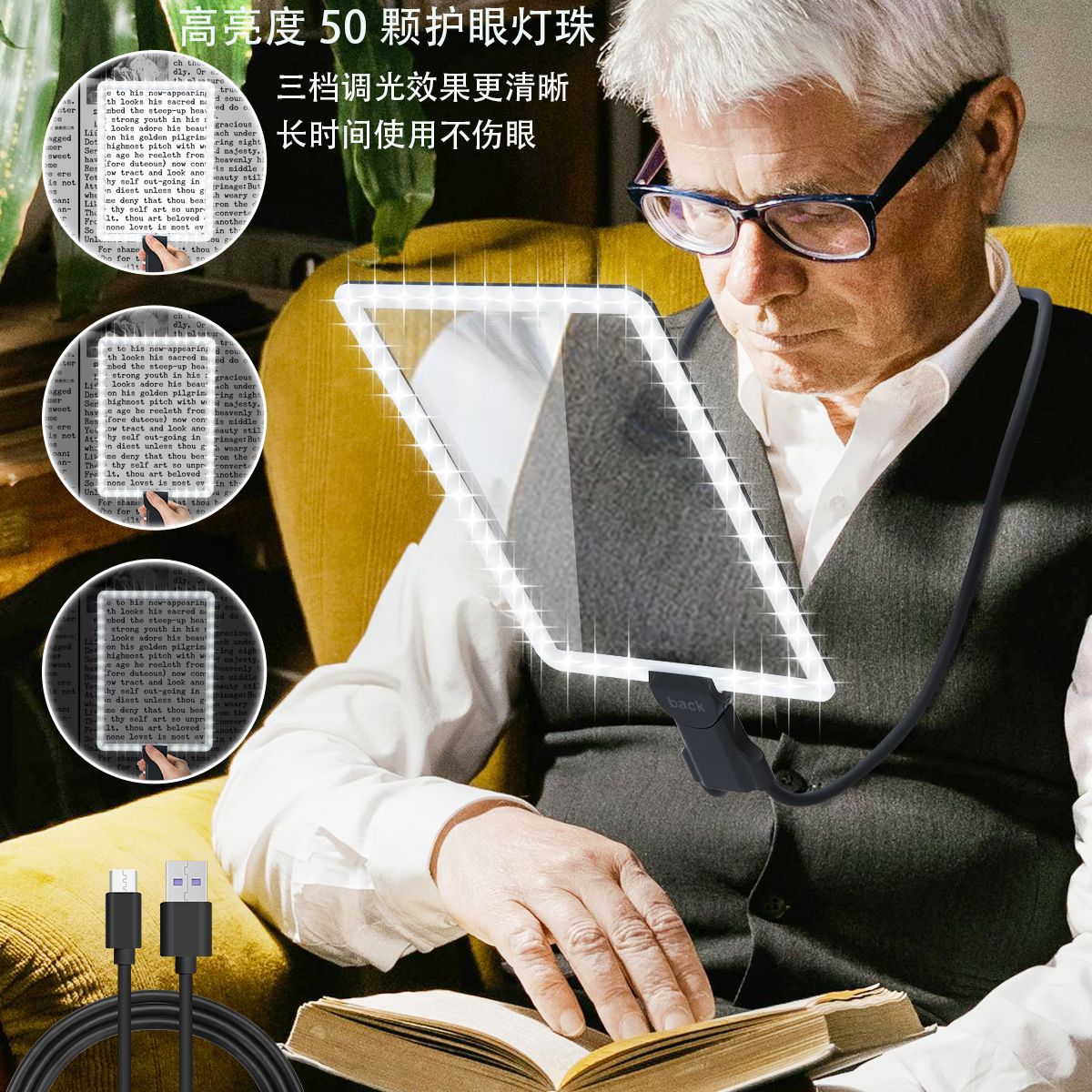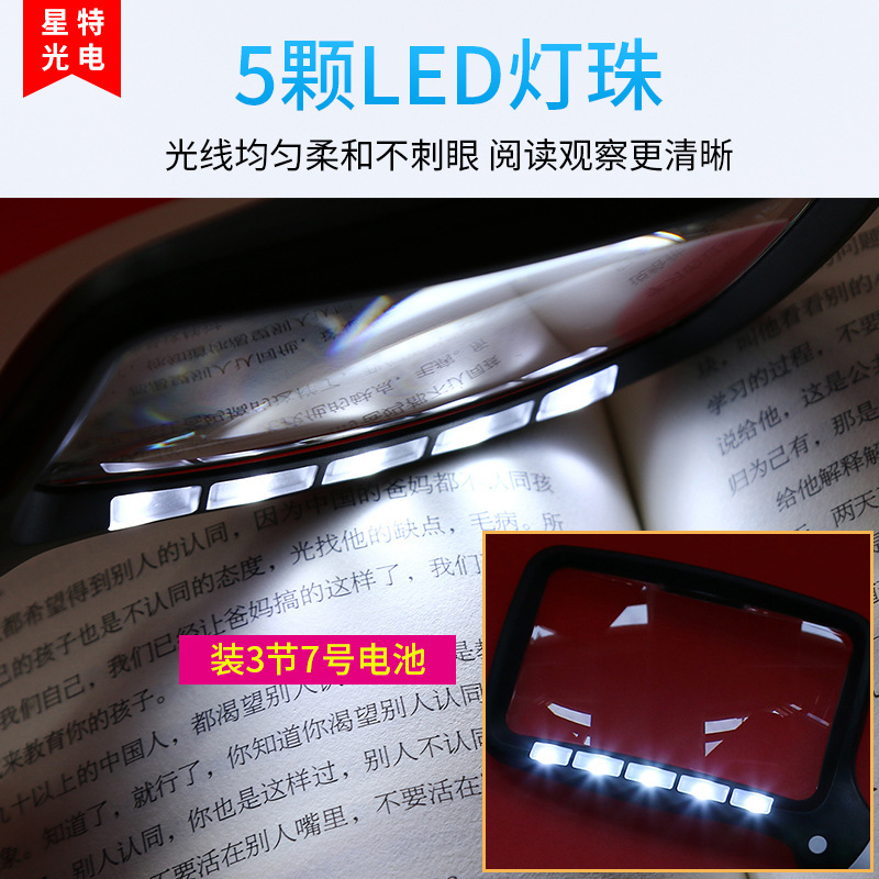 国境を越えた新型の大面積手持ち式多灯三色拡大鏡USB給電老人が拡大鏡を読む