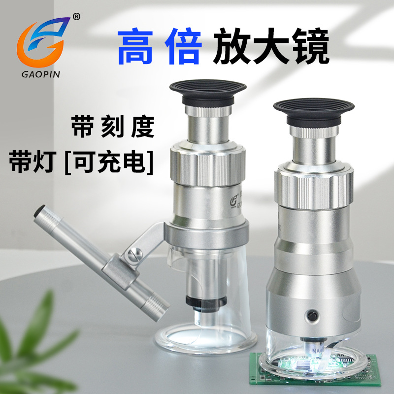 スケール付きルーペ付き定規顕微鏡ledランプ付き高脚鏡測定100倍鏡百倍鏡2010-100
