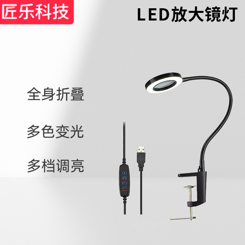 16090c新しい10倍ledライト付き电化鉄クリップ溶接修理多目的卓上ルーペ