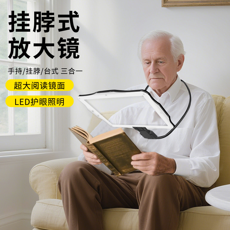 TKクロスボーダーホットセール12倍ヘッドマウント首掛けハンドヘルドデスクトップスリーインワン138mm7倍読書と新聞拡大鏡