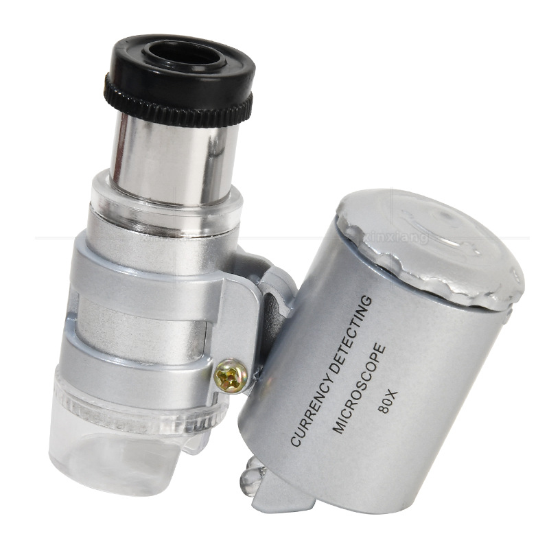 100X ポータブル高倍率拡大鏡ポケットミニ 80X 顕微鏡 2LED ライト 1UV 蛍光紙幣検出器ライト