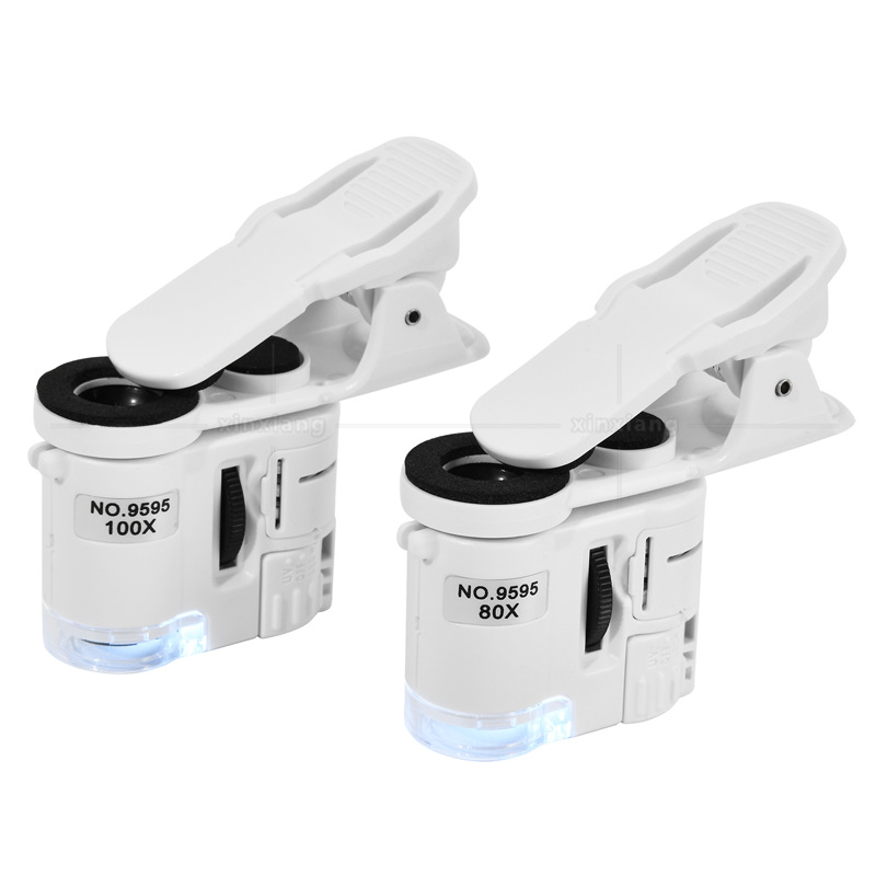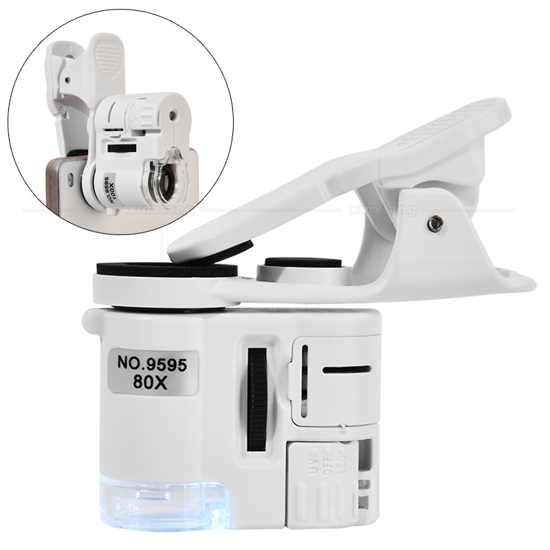 100倍アンティークジュエリー翡翠鑑定顕微鏡LEDライトUV紙幣検出器パープルライト携帯電話クリップ80倍拡大鏡