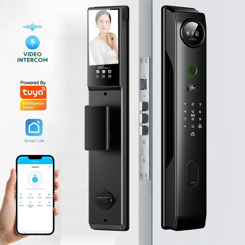 Tuya マルチボイススマートドアロック顔認識指紋ロック全自動ビデオインターホン玄関ドア電子ロック