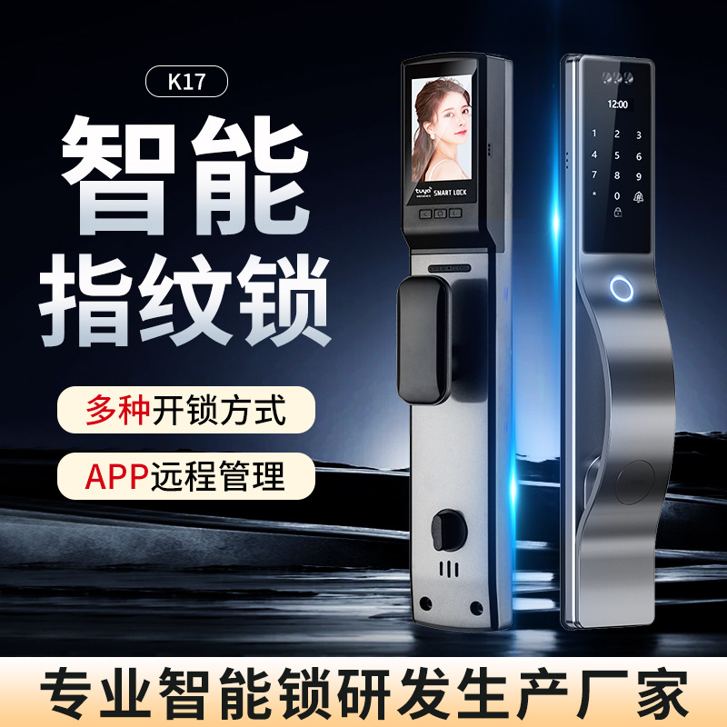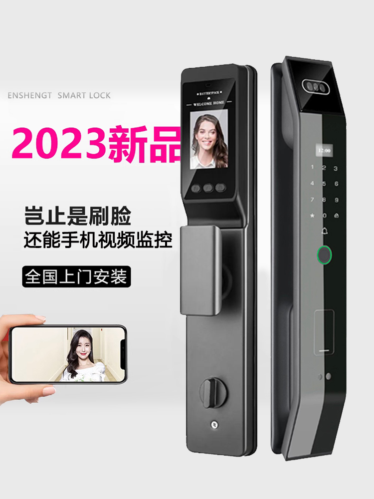 ハイエンド全自動指紋ロック家庭用防犯ドア顔認識スマートドアロック家庭用可視猫眼電子ロック
