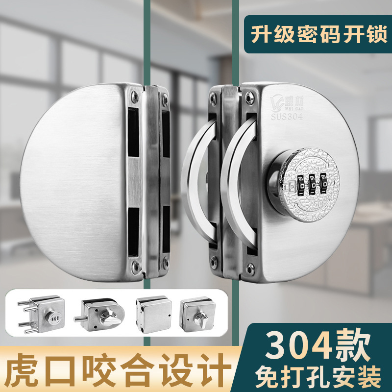 ガラスドアロック穴なしシングルダブル押し引き戸円形パスワードロック穴なしステンレス製ラッチオフィス用ロック