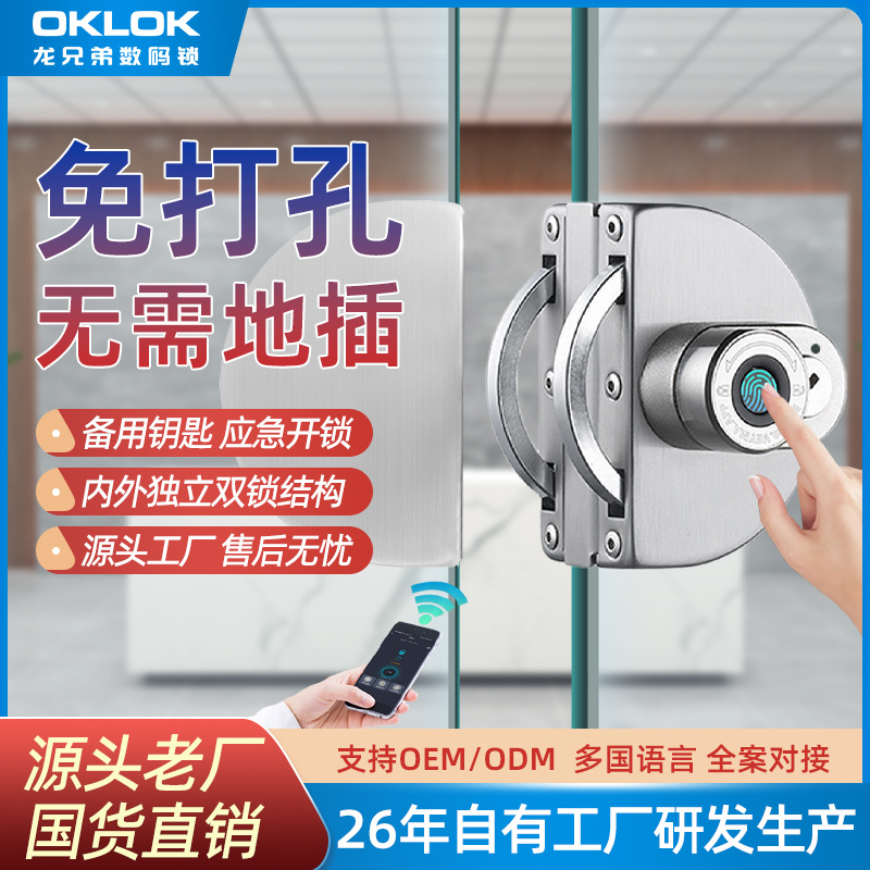 通通ガラス錠臨時パスワード穴なし電子錠オフィス電子ドアロックガラスドア指紋錠