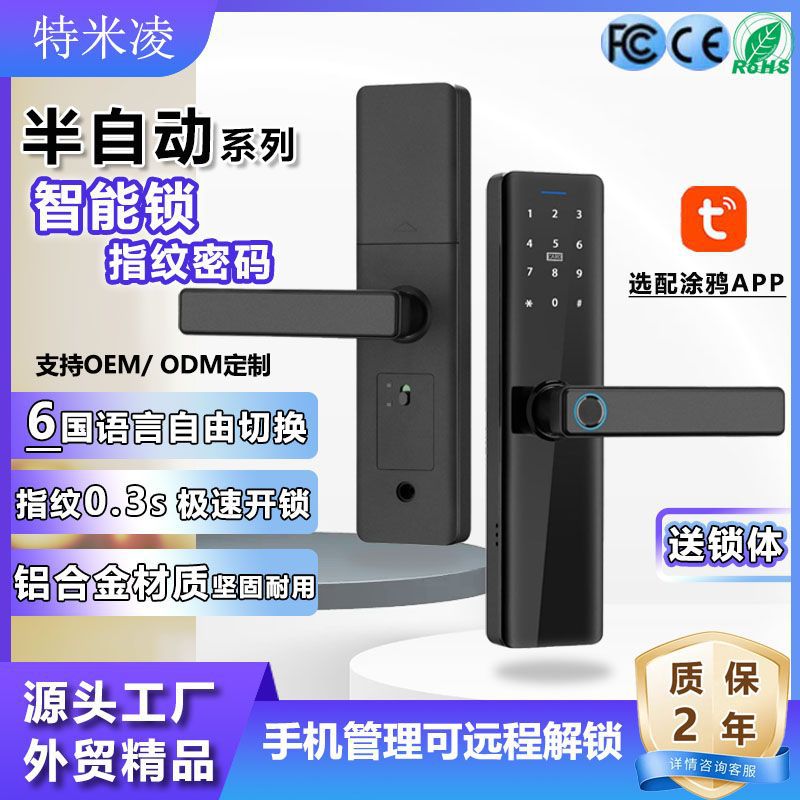 指紋ロックホームエントリードア落書きワンハンドオープンスマートロックアパート電子木製ドアロック盗難防止パスワードロッククロスボーダー