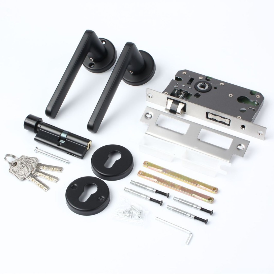 工場直販黒屋内寝室ドアロックホームルーム無垢材ドアハンドルロックユニバーサルハンドルミュート