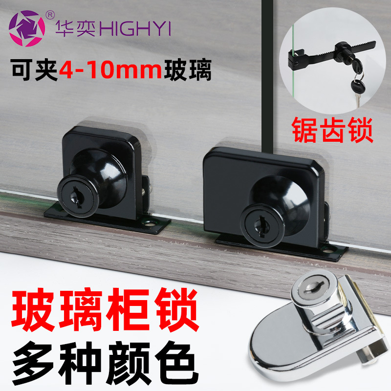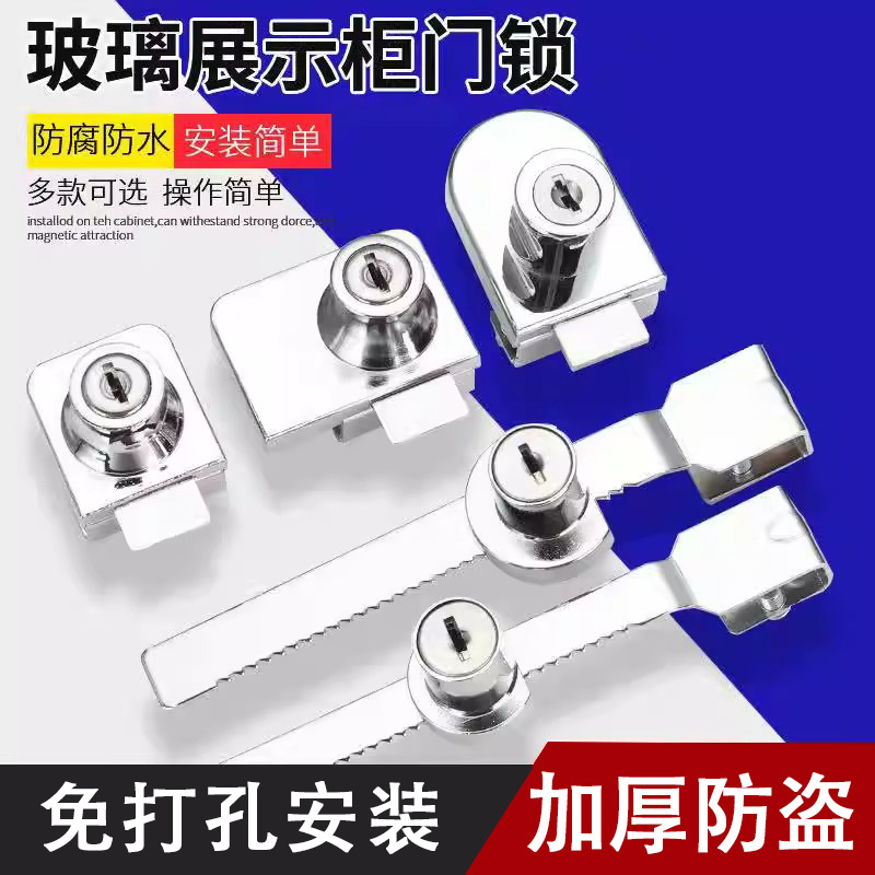 穴開け不要のシングルおよびダブルオープンガラスキャビネットロック、冷蔵庫専用鋸歯ロック、ショッピングモールディスプレイキャビネット引き戸ガラス引き戸ロック