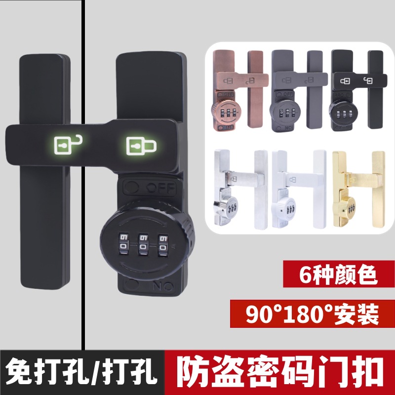 パンチフリーのパスワードロックドアバックルロック固定90度ロック引き戸ロックトイレバックル引き戸ロックラッチドアボルト