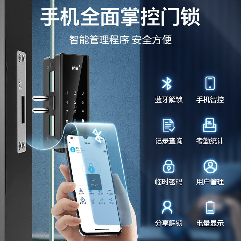 ガラスドアパスワードロックオフィス両開きドアシングルオープン会社店舗フレームレススマート指紋ドアロック卸売