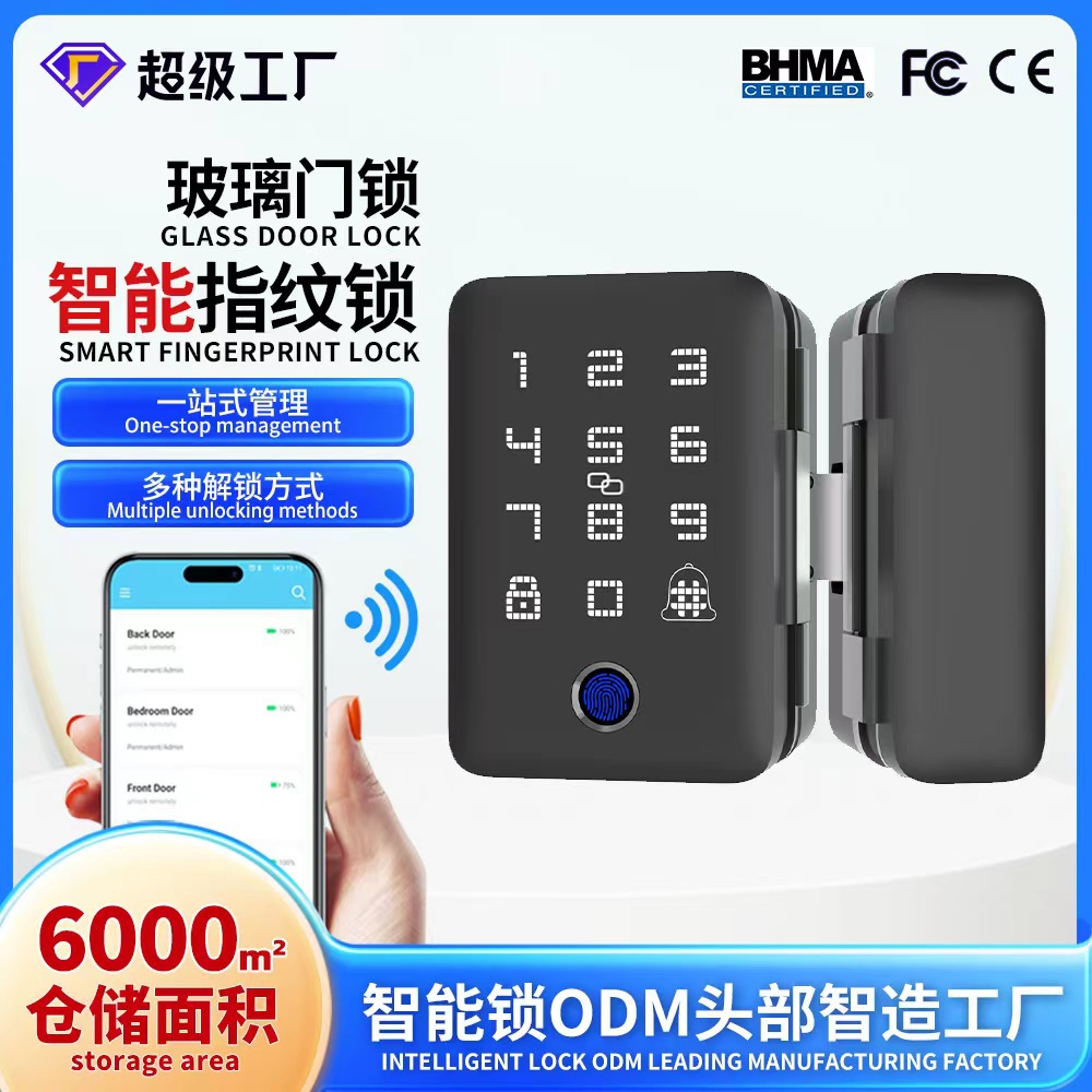 新しいガラスドアロック、パンチングなし、両開きドア、指紋認証パスワード、スワイプカード、スリーインワンカスタマイズされたスマートガラスロック