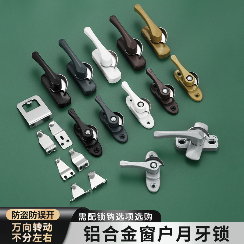 厚みのあるユニバーサル三日月ロック双方向窓ロックアルミ合金ドアと窓フックロック子供の安全ロックフックロックメーカー