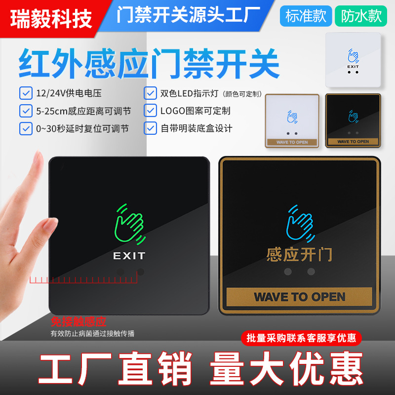86型防水赤外線誘導入退室スイッチ道門柱スイッチ自動ドアリセット明装外出ボタン