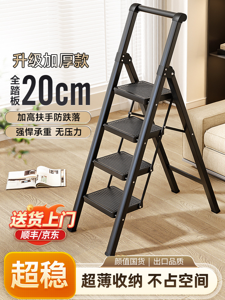 家庭用はしご折り畳み多機能伸縮増厚室内人字はしご階段小型携帯四歩はしご