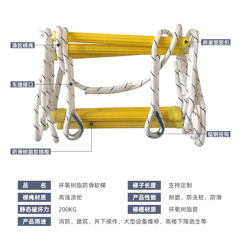 救助家庭用ロープ梯子検査耐摩耗性滑り止めソフト梯子訓練クライミング救命救助ロープ梯子工事樹脂ロープ梯子