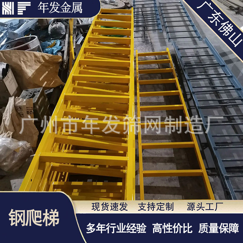 広東の黄色の鉄はかごを保護してはしごを登ります。