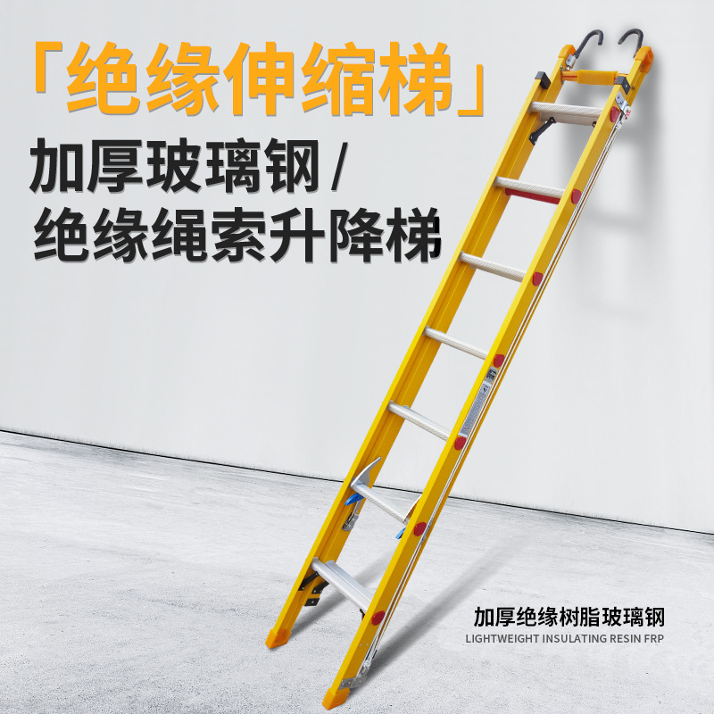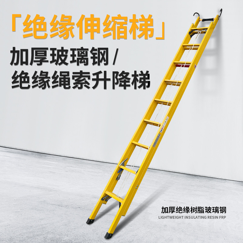 ガラス鋼絶縁伸縮梯子電気工梯子登高引上げ梯子工事梯子厚電力工事ロープ梯子昇降梯子