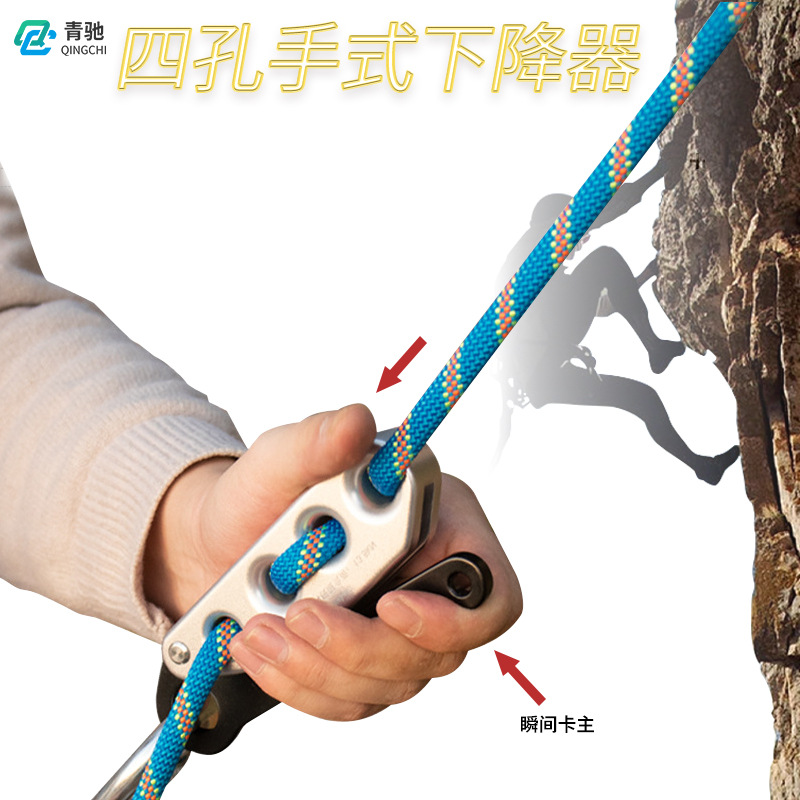 Q & cスポットアウトドア登山四穴手式スピード降下器脱出救助保護器クライミングロープ降下緩衝器
