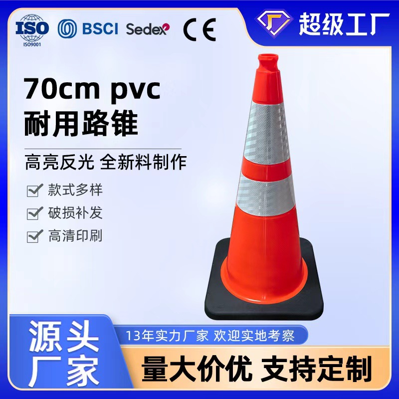 PVC ロードコーン安全警告反射プラスチックコーンバレル黒底リング安全コーン交通施設衝突防止コーン