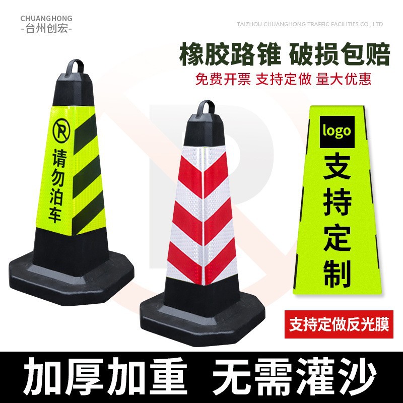 PUゴム製四角形加重道路標識コーン、駐車禁止警告、車止め、駐車禁止神器