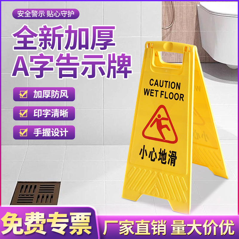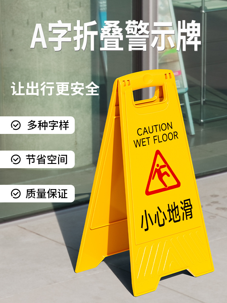A字型警告標識、地面が濡れている警告標識、修理中、駐車禁止、清掃中を注意深く滑りましょう。
