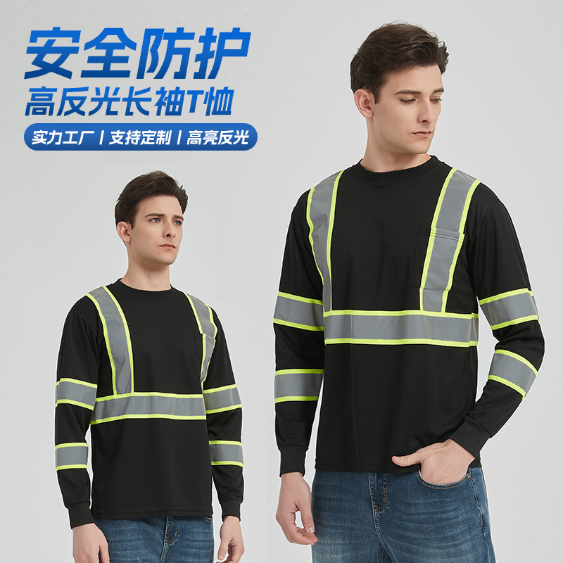 国境を越えた売れ筋の反射長袖Tシャツ、建設と輸送、高光沢ラウンドネック反射Tシャツ、通気性のある日焼け止め反射服