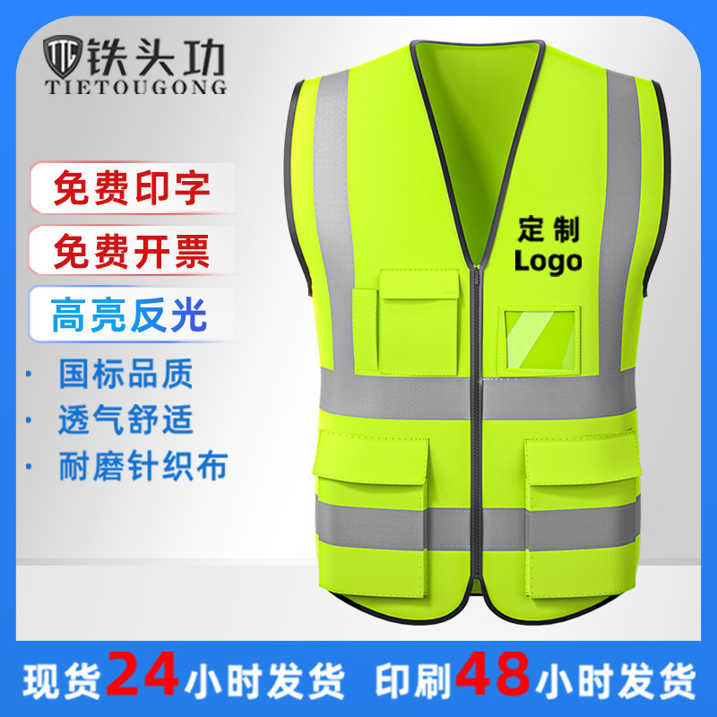 反射ベスト卸売り反射服反射馬甲多ポケット工事建築夜間交通アイロン字反射服