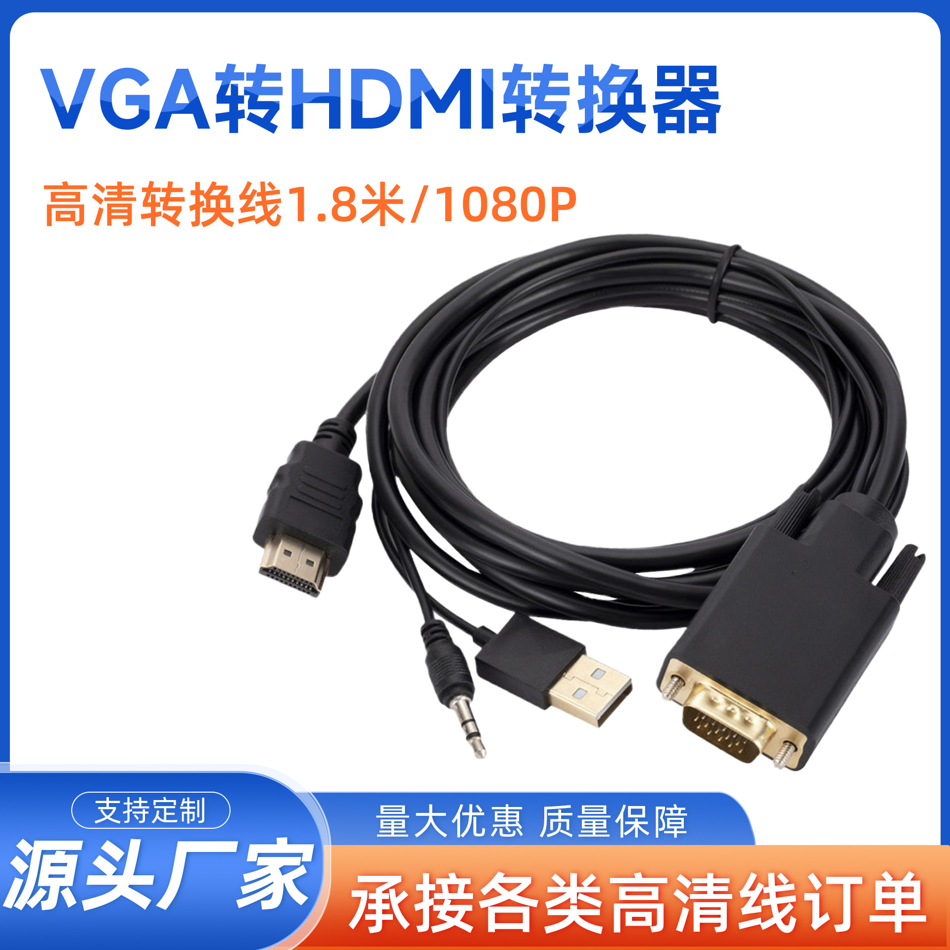 メーカースポット卸売りhdmi変換vga hd変換ケーブルhdmi to vgaケーブルは1080pに対応