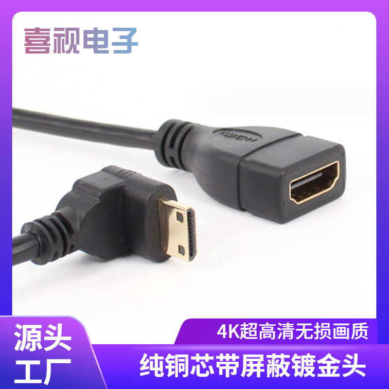 下エルボMiniHDMI中継ケーブルminihdmi公転hdmiメス携帯電話タブレット接続テレビケーブル
