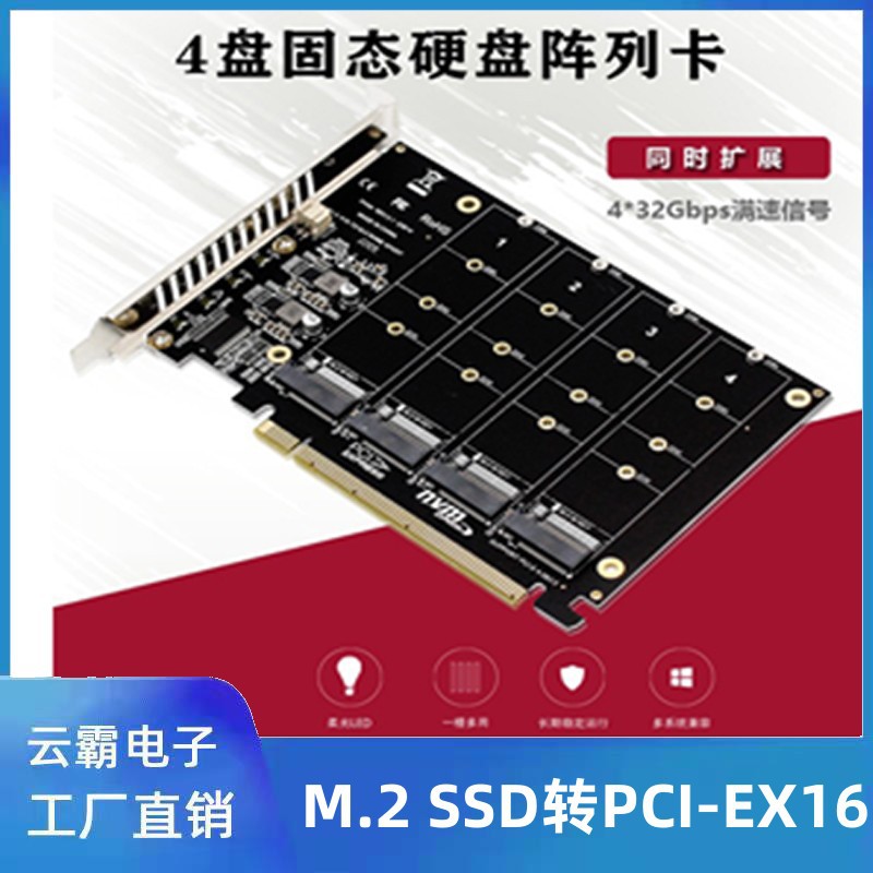 Nvme m.2 4ディスクソリッドステートドライブのアレイカードは、PCI-E16X 4ポートnvmeアダプタpci拡張カードに変換されます