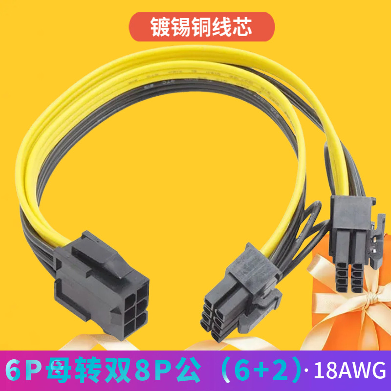 6P - デュアル 8P 1 対 2 アダプター パラレル グラフィックス カード電源 6Pin メス - デュアル 8Pin オス 6+2Pin 延長ケーブル