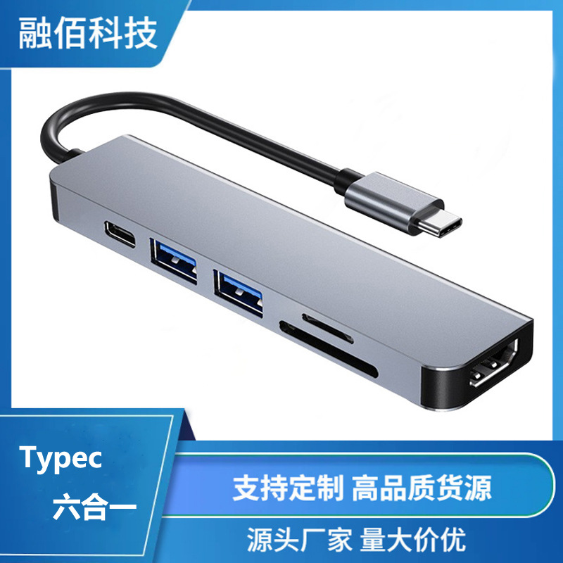 クロスボーダー Type-C ハブ コンピュータ拡張ドック 4K HD PD 高速充電 USB-C 変換ハブ 6 イン 1