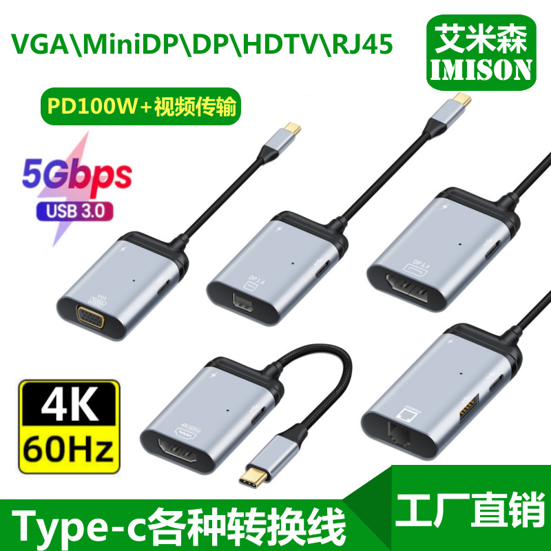 Type-c回転dp中継ケーブルvga \ hd \ rj45ネットワークカードhd変換器ノート携帯電話充電スクリーン